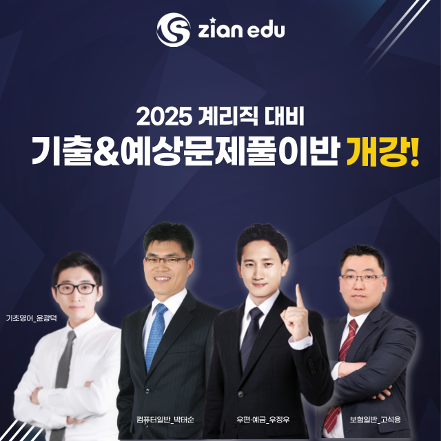공무원 교육 전문기업 지안에듀(대표 박태순)가 2025년 계리직 공무원 필기시험 시행 확정에 따라 ‘계리직 9급 대비 기출 및 예상문제풀이반’을 개강한다고 밝혔다.