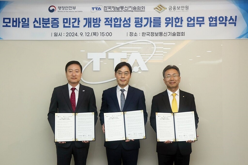 행정안전부는 12일 금융보안원, 한국정보통신기술협회와 함께 ‘모바일 신분증 민간 개방 적합성 평가를 위한 업무협약(MOU)’을 체결했다고 밝혔다.
