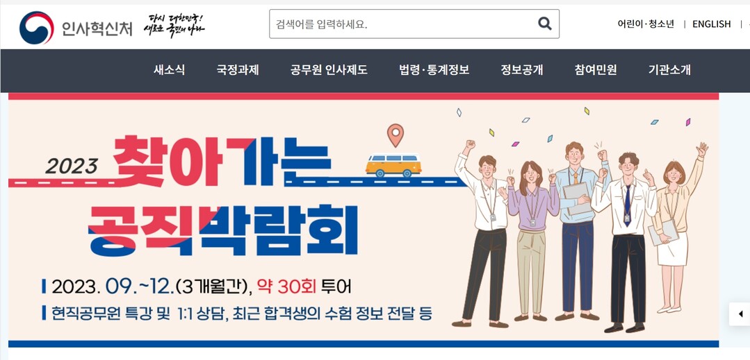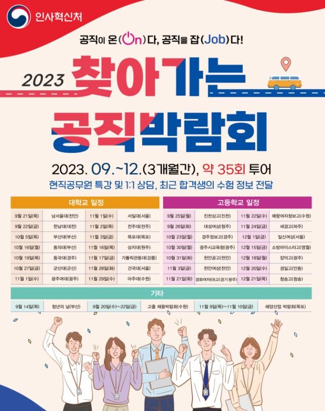 인사혁신처는 지난 27일 전북 군산대를 시작으로 광주광역시, 전북 전주, 전남 목포 등에서 ‘2023 찾아가는 공직박람회’를 개최한다고 오늘(30일) 밝혔다.