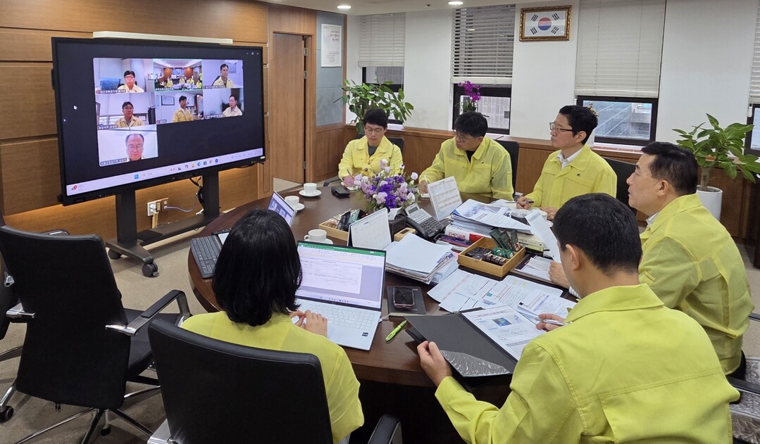 ▲안전원은 17일 오전 여름철 풍수해 대비 전국 지부 관리자들과 비대면 비상 대책 회의를 진행하고 있다.