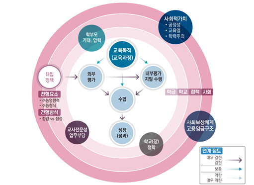 ▲우리나라 일반고등학교 수업과 평가의 작동방식(한국교육개발원 제공)