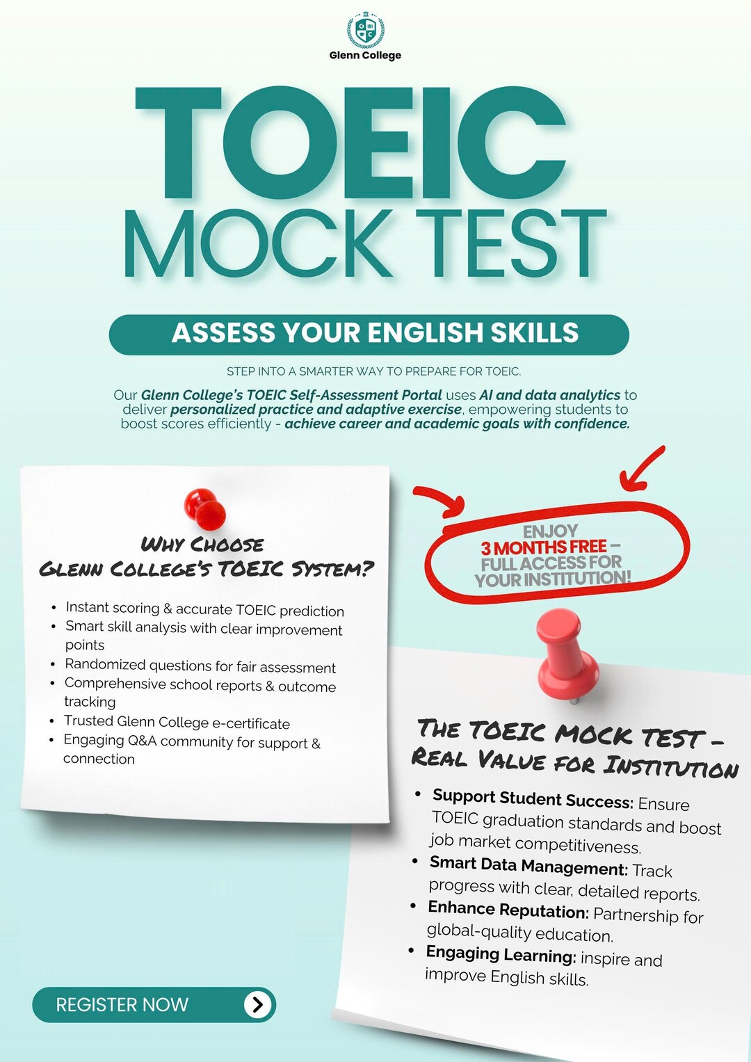 글랜컬리지 관계자는 “이번 무료 토익 (TOEIC) Mock Test 서비스는 학생들에게 더 많은 학습 기회를 제공하고, 국제 시험 준비를 지원하기 위한 노력의 일환”이라며, “앞으로도 글로벌 교육기관으로서 학생들의 진로와 성장을 지원할 다양한 프로그램을 확대해 나가겠다”고 밝혔다.