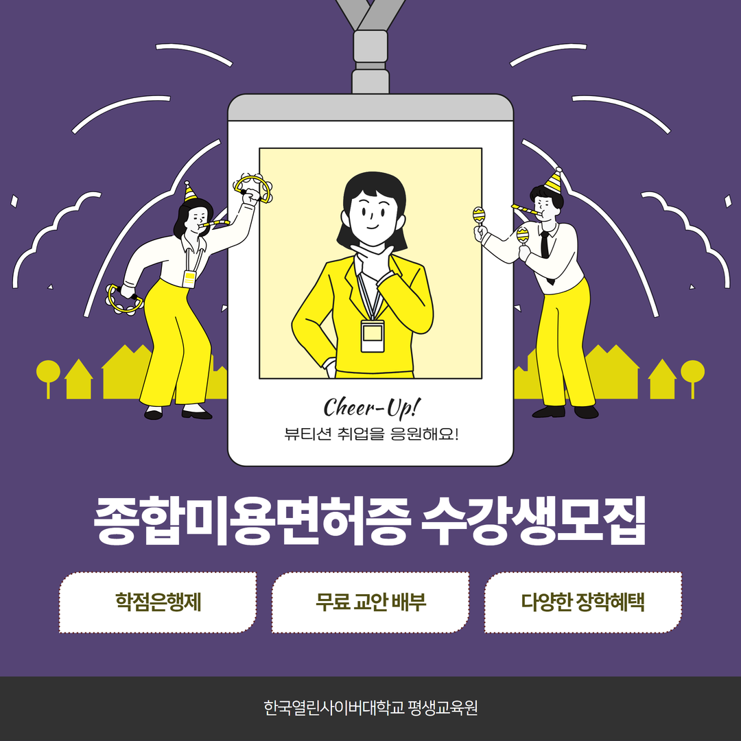 실습과정 없이 100% 온라인으로만 진행되는 종합미용면허증은 pc와 모바일로 다양한 이론을 쌓고, 자신의 역량을 넓힐 수 있는 기회로 직장인, 주부, 중장년층 남녀노소 상관없이 누구든 지원할 수 있는 커리큘럼으로 짜여 있다.