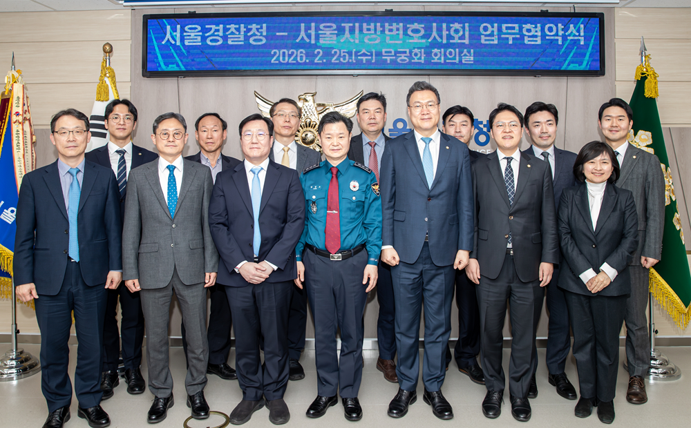 서울지방변호사회는 25일 오후 3시 30분 서울경찰청 무궁화 회의실에서 서울경찰청과 업무협약(MOU)을 체결하고, 경찰 수사 단계에서 변호인 조력권을 보다 실질적으로 보장하기 위한 협력 체계를 구축하기로 했다.