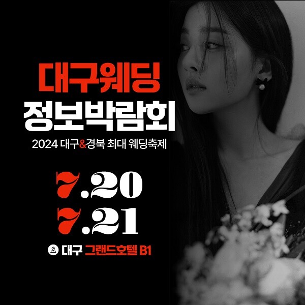 대구 그랜드호텔 지하 1층에서 7월 20일과 21일, 총 이틀 동안 대구웨딩정보박람회를 개최한다.