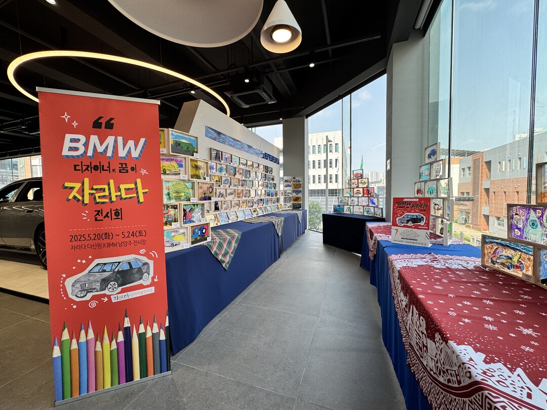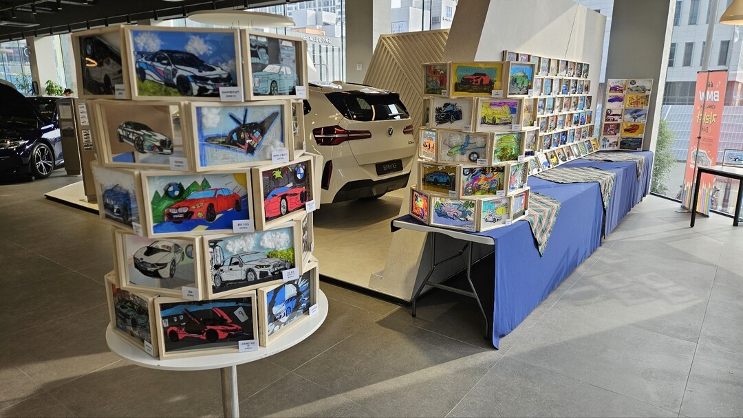 이번 전시는 다산 자라다 남아미술학원에 재원중인 어린이들이 참여해 ‘나만의 BMW’를 주제로 한 그림 작품을 선보인다. 단순한 자동차를 넘어 BMW 우주선, 공룡, 인공위성 등 기발한 아이디어가 담긴 작품들이 전시장 곳곳을 채우고 있어 눈길을 끈다.