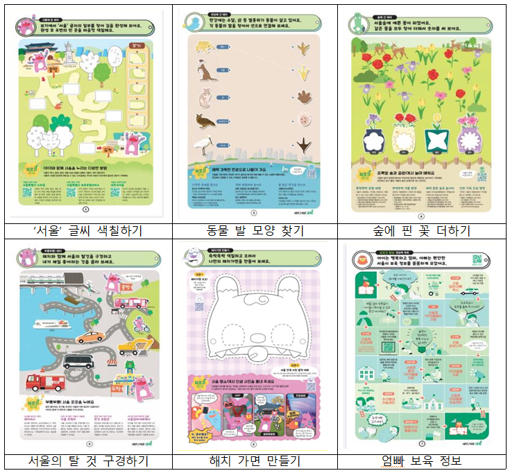 ‘내친구서울 새싹’은 기존 초등학교 3~6학년을 대상으로 한 ‘내친구서울’의 동생판으로, 유아들이 직접 그리고 색칠할 수 있는 활동지와 보호자에게 유익한 서울 소식, 체험 정보를 담았다.