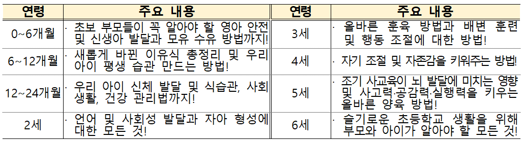 특히 유아 영어 조기교육, 학습 선행 등 저연령 사교육에 대한 불안감 해소에 초점을 맞춰, 부모들이 지나친 조기교육 대신 아이의 발달단계에 맞는 건강한 양육 방식을 선택하도록 돕는다.