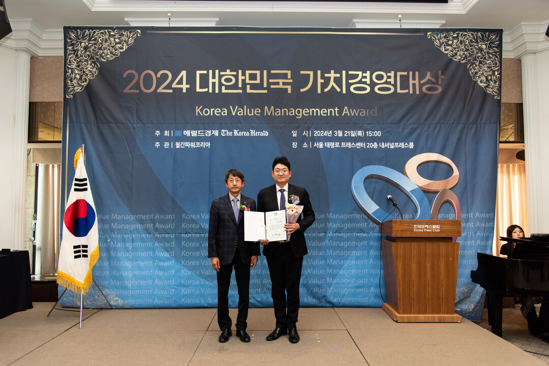 ‘대한민국 가치경영대상’은 헤럴드경제, 코리아헤럴드가 주최하고 월간파워코리아(발행인 백종원)가 주관하는 시상식으로 ㈜헤럴드가 대한민국의 우수/유망한 기업(기관/인물/브랜드)의 고객가치경영 경쟁력을 평가 점검해 소비자들에게 올바른 기준을 제시하기 위해 제정됐다.
