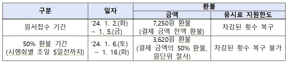 ○ 환불은 실제 결제 금액 기준으로 진행되며 50% 환불의 경우, 10원 미만의 금액은 절사합니다.