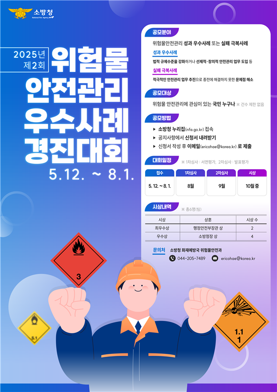 경진대회와 관련한 자세한 문의는 소방청 위험물안전과(044-205-7489)로 연락하면 된다.