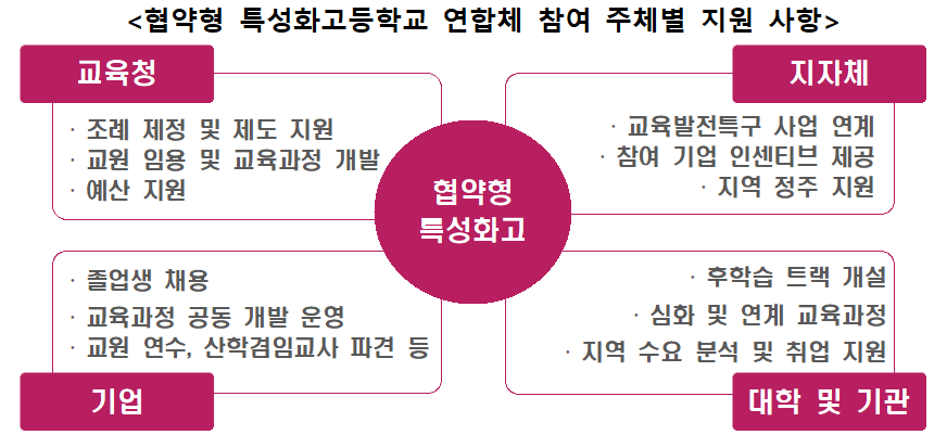 협약형 특성화고로 지정되기 위해서는 희망하는 학교가 지자체, 교육청, 지역 기업, 대학 등 유관 기관과 협약을 체결하고, 해당 협약을 바탕으로 구체적인 육성 계획을 수립해 교육부에 제출해야 한다.