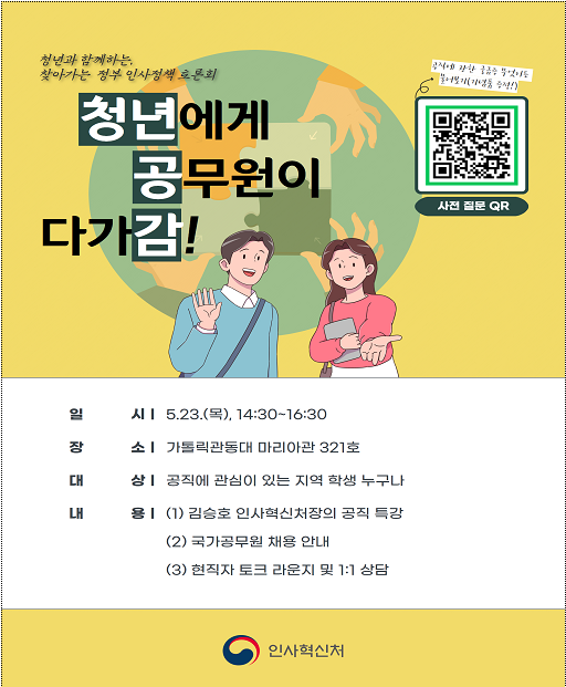 현장 중심의 제도 혁신을 목표로 2022년에 도입된 '청년공감'은 정책담당자가 직접 학교를 방문해 공무원 채용에 대해 소개하고, 학생들과 관련 현안을 토의하는 청년 소통 사업이다.