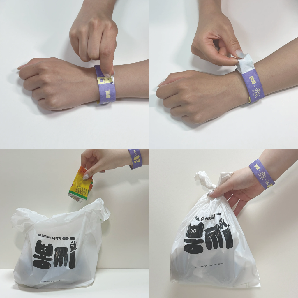 <쓰레기 봉투가 내장된 입장팔찌 ‘봉찌’ 사용법>