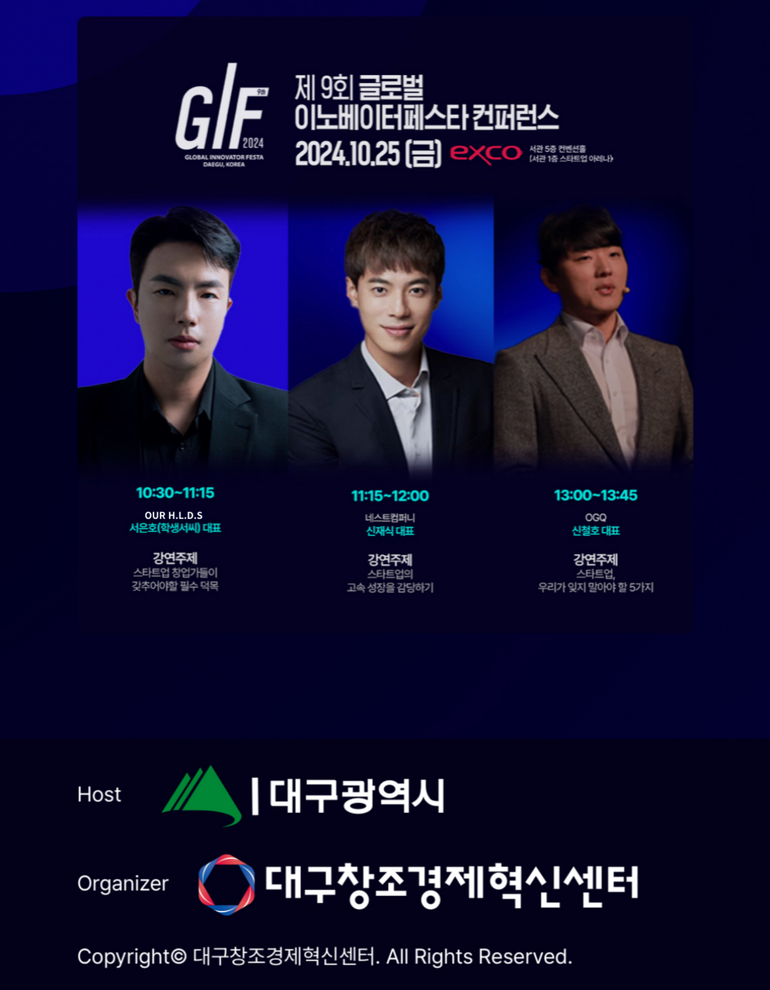 서대표의 공식 초청을 진행한 제 9회 글로벌 이노베이터 페스타(GIF)는 미래의 신산업을 이끌 창의 인재를 양성과 함께 혁신적인 창업 아이디어를 발굴 하기 위한 대구광역시 글로벌 창업 행사로 2024 미래혁신기술박람회(FIX 2024)와 함께 10월 23일 수요일부터 26일 토요일까지 엑스코(EXCO)에서 개최 된다.