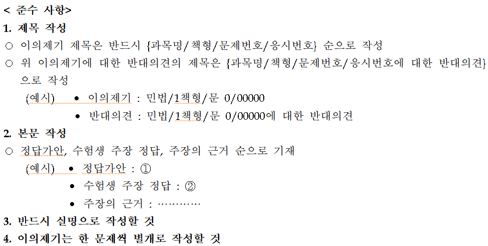이의제기는 반드시 아래의 준수사항을 지켜 작성하시기 바랍니다.