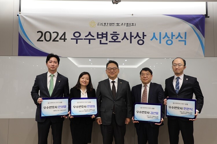 이번 우수변호사상 수상자는 안성열, 김선웅, 민관식, 이현우, 한영화 변호사 등 5인이 선정됐다.