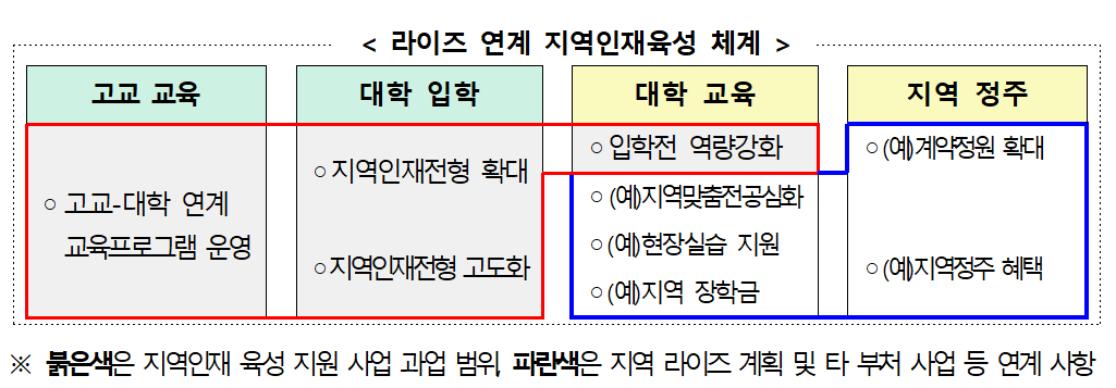 교육부는 이를 통해 지역 고교-대학 간 교육 연계를 촘촘히 강화하고, 지역대학에 대한 신뢰와 선호를 높이겠다는 전략이다.