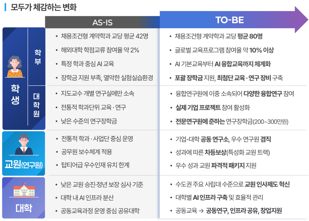 거점국립대학은 동시에 지역 AI 교육·연구 거점 역할도 맡는다. 특정 학과 중심이 아니라 대학 전체로 AI 교육을 확산하는 방식이다.