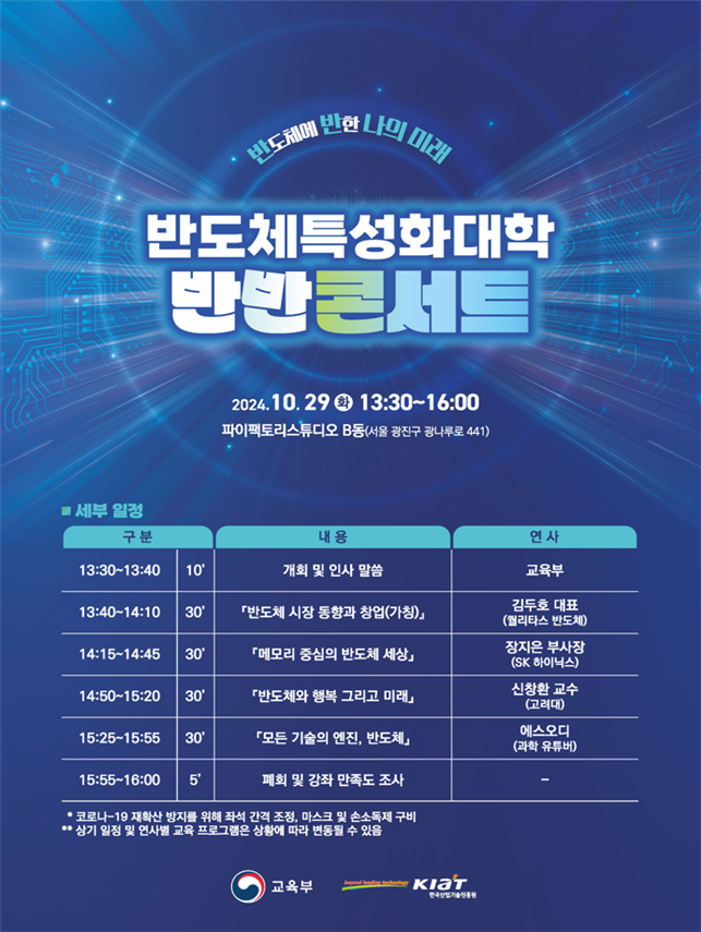 교육부와 한국산업기술진흥원은 오는 29일 ‘제1회 반도체특성화대학 토크콘서트’를 개최한다.