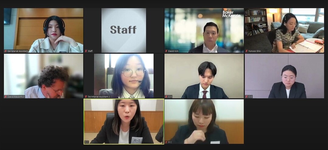 연세대(피신청인)와 한동대(신청인)의 결승전에는 베이커맥켄지 앤 케이엘파트너스 David Kim 외국변호사, 법무법인 피터앤김 신연수 변호사, David MacArthur 외국변호사가 중재판정부를 이뤘다.