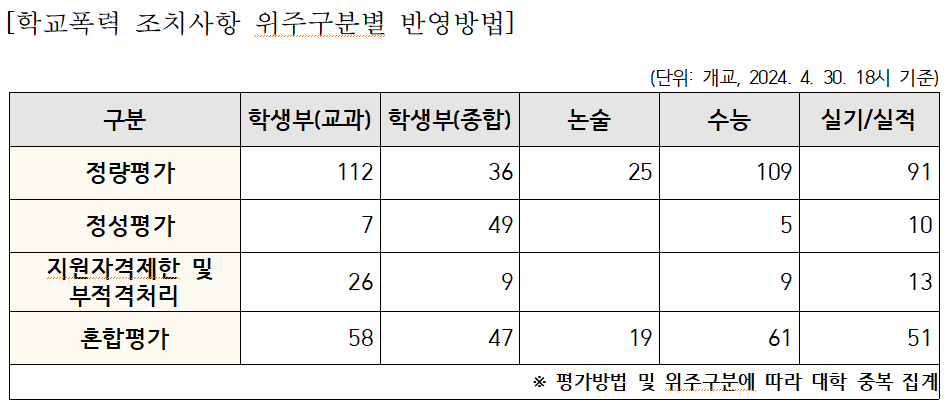 2026학년도부터는 대학입학전형기본사항과 ‘학교폭력 근절 종합대책’에 따라 학교폭력 조치사항이 대입전형에 의무적으로 반영된다.