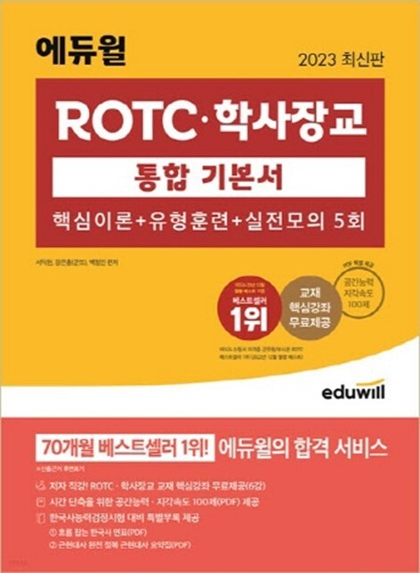 에듀윌 관계자는 “ROTC와 학사장교에 모두 활용할 수 있어 범용성이 넓어 오랫동안 베스트셀러에 올랐다”며 “다양한 부가자료들을 통해 수험생들이 학습에 흥미를 잃지 않도록 노력했다”고 설명했다.