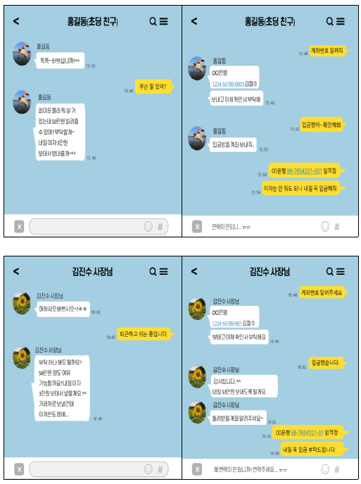 이뿐만 아니라, 범인들은 메신저 계정을 도용해 지인들에게 “급히 돈이 필요하다”며 송금을 요구하는 2차 피해까지 발생시키고 있다. 범인들은 평소 대화 내용을 토대로 지인 사이에서만 알 수 있는 사적인 정보를 언급해 신뢰를 구축한 뒤, 50만 원 정도의 금액을 요청하는 방식으로 피해자를 속인다. 이러한 치밀한 범죄 수법은 피해자가 범죄임을 인지하기 어렵게 만들어 피해 확산을 부추기고 있다.