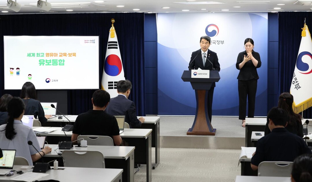 <이주호 부총리 겸 교육부장은 지난 6월 27일(목), 정부서울청사에서 브리핑을 갖고 유보통합의 추진 과제 및 일정을 제시하기 위한 「유보통합 실행계획(안)」을 발표했다.>