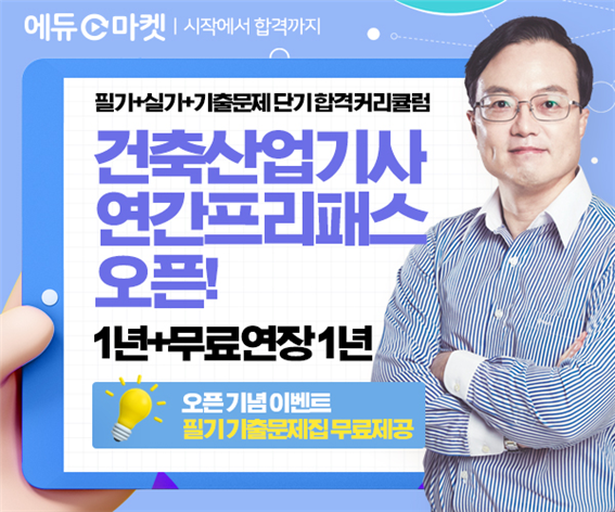 교육컨텐츠의 선두주자인 에듀마켓은 건축산업기사 연간프리패스를 오픈하여 서비스하고 있다.