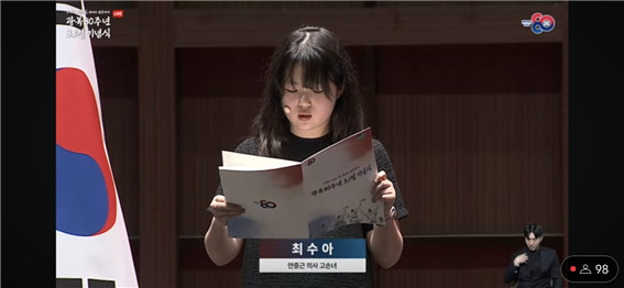 이번 행사에서 특히 주목받은 인물은 안중근 의사의 고손녀이자 독립운동 명문가의 후손인 최수아(인천송담초 6학년) 양이었다. 최 양은 독립선언서를 직접 낭독하며, 조국 독립을 위해 헌신한 선조들의 정신을 기리는 뜻깊은 순간을 연출했다.