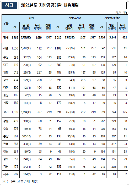 올해 지방공공기관 8,765명 채용, 신규 채용 7,448명·청년 인턴 1,317명