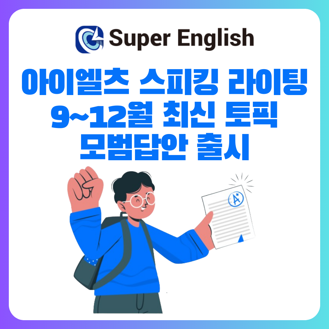 이처럼 검증된 자료를 구하지 못해 어려움을 겪고 있는 응시 희망자들을 위해서 슈퍼잉글리쉬에서 2024년 9~12월 아이엘츠 스피킹 최신 토픽 및 모범답안을 출시했다.