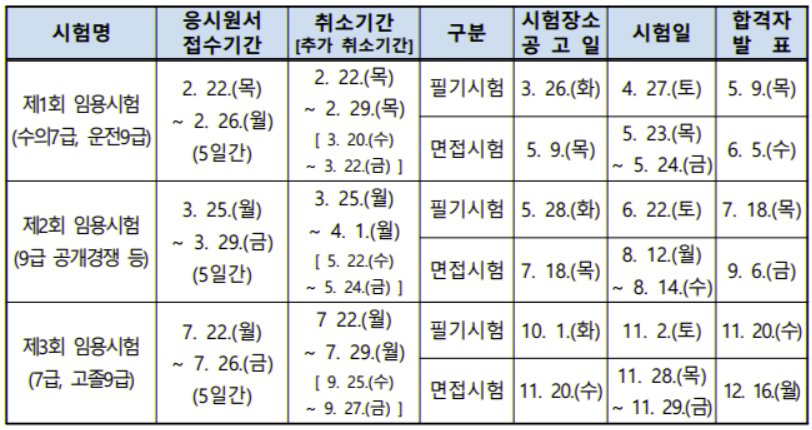 제2회 9급 공채 원서접수: 3월 25일~29일, 필기 6월 22일