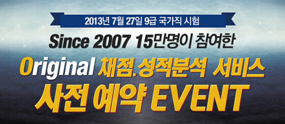 올해 국가공무원 9급 공채 시험 합격선이 궁금한 수험생들은 KG패스원이 제공하는 채점, 성적분석 서비스에 문을 두드리면 된다. 공무원시험 전문학원 KG패스원은 2013년 7월27일 국가직 9급 시험을 치른 수험생을 대상으로 시험 채점, 성적분석 서비스를 제공한다고 19일 밝혔다. KG패스원 공무원학원의 채점, 성적분석 서비스는 지난 2007년 공무원 수험업계 최초로 시작됐으며, 15만 명이 참여하여 그 명성을 이어가고 있다. 특히 KG패스원 공무원학원의 채점, 성적분석 서비스는 올해 새로 적용된 선택과목과 조정점수제를 반영하여 합격선을 예측할 수 있는 데이터를 제공한다. 또한 채점서비스를 비롯하여 수험생에게 국가직 및 모의지원을 통한 지방직 합격예측 시스템을 지원하며, 출제경향 및 해설 강의 등의 다양한 서비스를 제공할 예정이다. 채점, 성적분석 서비스를 이용하게 되면 수험생은 과목별, 영역별, 문항별 강약 분석과 원점수 및 조정점수가 반영된 상세 성적표를 확인할 수 있으며, 상위권 학생들과의 점수 비교와 모의지원으로 자신의 합격 가능성을 예측할 수 있다. 한편, KG패스원 공무원학원은 현재 국가직 9급 시험 채점, 성적분석 서비스 사전 예약 이벤트를 진행하고 있다. 사전 예약 이벤트는 국가직 9급 시험 전 자신의 시험정보(응시직렬, 선택과목, 가산점 등)을 입력하면 학원, 동영상 강의 할인쿠폰 등 다양한 혜택이 주어지며, 다른 응시생의 선택과목 응시 현황도 한 눈에 확인할 수 있다.