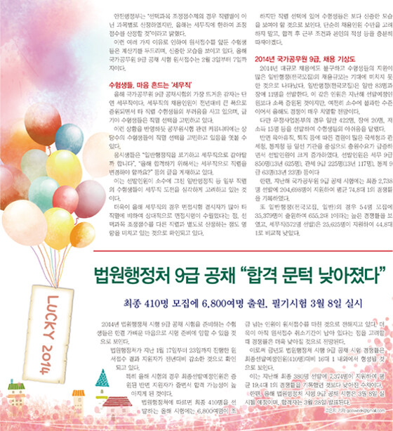 2014년 법원행정처 시행 9급 공채 시험을 준비하는 수험생들은 한결 가벼운 마음으로 시험 준비에 임할 수 있을 것으로 보인다.