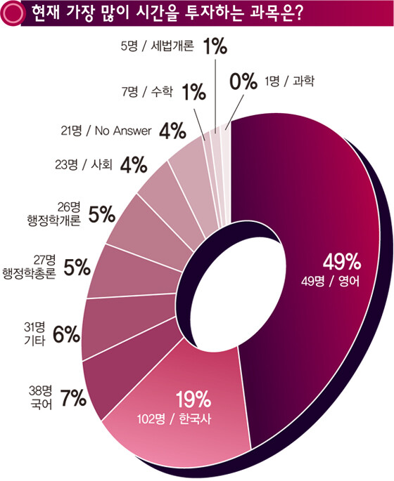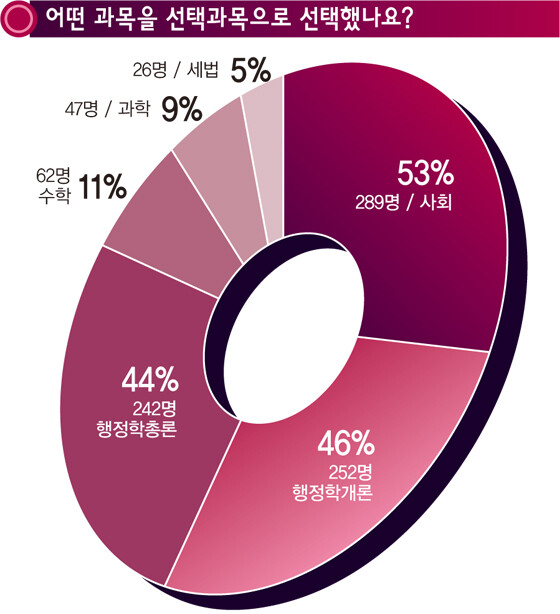 국가직 9급 수험생들의 ‘변심’...사회 53%> 행정학 46%> 행정법 44% 順