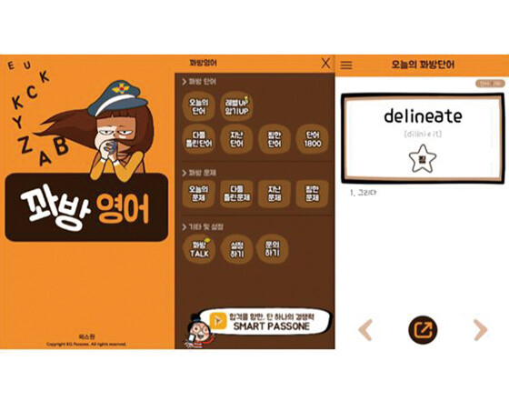 한편 '꽈방영어' 앱은 구글 플레이스토어나 애플 앱스토어, 또는 KG패스원 홈페이지(www.passone.net)에서 다운로드 받을 수 있다.
