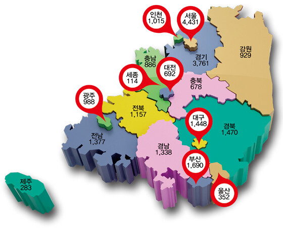 이에 본지에서는 올해 실시되거나 앞으로 예정되어 있는 주요 공무원시험(사회복지직, 국가직 9급, 소방직, 지방직 9급, 교육청시험 등) 지원자 현황을 지역별로 알아보는 자리를 마련하였다.