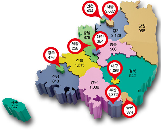 올해 17개 지자체에서 17,190명 지원, 합격 문턱…전남 낮고, 전북 높고